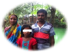 Bristi’s parents are poor (Father: Amal Chandra 5 &MotherRenuka Rani 42 of GangNagar, Mahjpara, Shibgonj, Bogra). She studies at  A. M. High School of GangNagar, Bogra and she wanted to be a teacher. She is a good student and always helped her mother. Azizul and another Belal used to tease her on the way to school. Her parents complained to the parents of Azizul, but nothing has improved rather perpetrator is piloting from parents. A case has been filed at Shibgonj Police Station (Case# 13; dated 10th May 2016 under section 7/30 of Women and Children Repression Act,2003), but as usual did nothing. Now the perpetrator is threatening the victim and her family to withdraw the case or face death. Bristi with parents in picture.