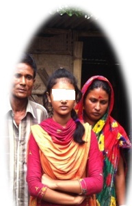 Bristy’s parents are poor (Father: Amal Chandra 45 &MotherRenuka Rani 42 of GangNagar, Mahjpara, Shibgonj, Bogra). She studies at A. M. High School of GangNagar, Bogra and she wanted to be a teacher. She is a good student and always helped her mother. Azizul and another Belal used to tease her on the way to school. Her parents complained to the parents of Azizul, but nothing happened. A case has been filed at Shibgonj Police Station (Case# 13; dated 10th May 2016 under section 7/30 of Women and Children Repression Act,2003), but police as usual did nothing. Now the perpetrator is threatening the victim and her family to withdraw the case or face death. Left picture -Bristy with parents.